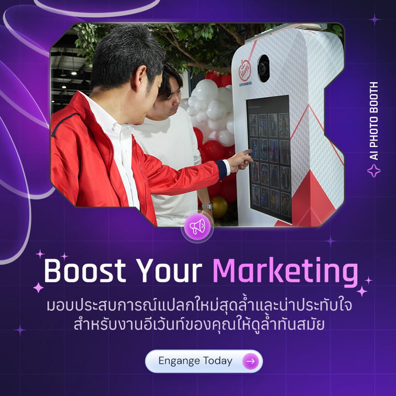 โปรโมชั่นพิเศษต้อนเดือนกันยายน AI Photo Booth ราคาพิเศษ 16,500.- (ปกติ 18,900.-) ถ่ายและปริ้นท์ได้ไม่จำกัดจำนวน
